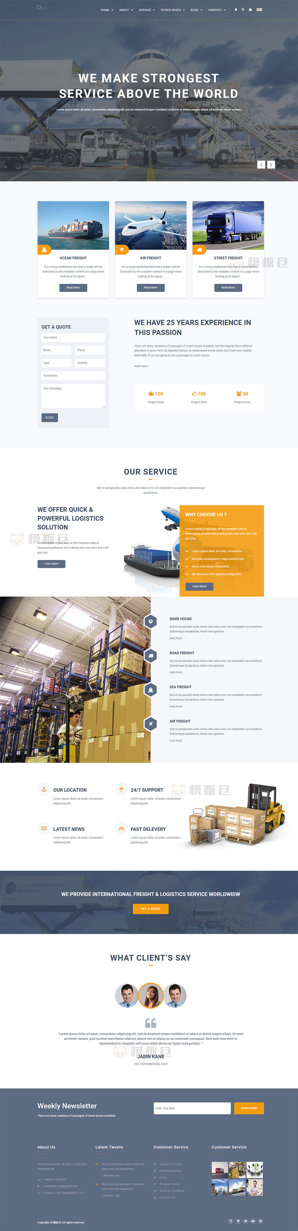 物流业的发展让许多物流公司要建立自己的网站以促进业务处理。为了节约时间成本,小编收集整理了这款响应式html运输物流网站前端模板,框架的编排简洁完美。